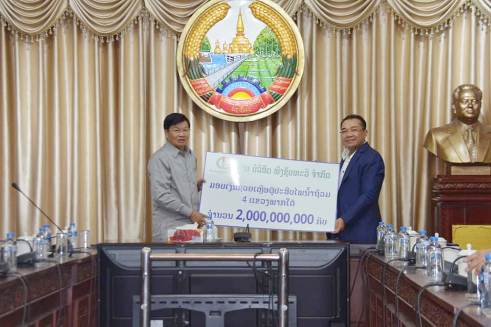 ວັນທີ 10 ກັນຍາຜ່ານມາ, ທີ່ຫ້ອງວ່າການສຳນັກງານນາຍົກລັດຖະມົນຕີ,ກະຊວງແຮງງານ ແລະສະຫວັດດີການສັງຄົມ, ໄດ້ມີຜູ້ປະກອບການຈາກ 6 ພາກສ່ວນເຂົ້າມາມອບເງິນຊ່ວຍເຫຼືອຜູ້ປະສົບໄພໃນ 6 ແຂວງພາກກາງ ແລະພາກໃຕ້, ລວມມູນຄ່າ 6,52 ຕື້ກີບ,