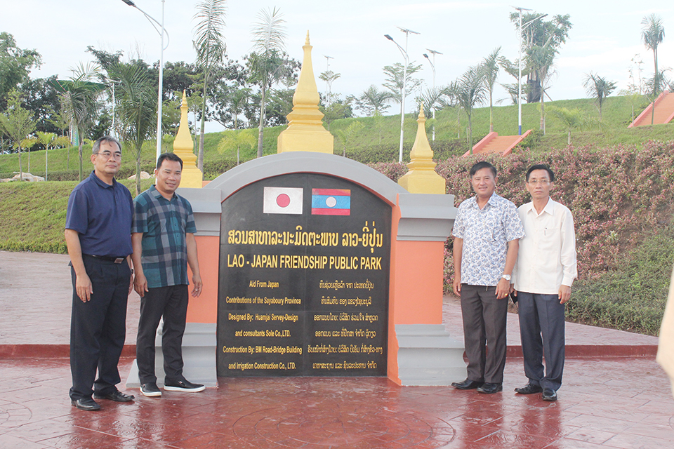 ໂຄງການກໍ່ສ້າງສວນສາທາລະນະມິດຕະພາບລາວ-ຍີ່ປຸ່ນ ທີ່ແຂວງໄຊຍະບູລີ ເປັນໂຄງການຮ່ວມມືຂອງລາວ-ຍີ່ປຸ່ນ, ຊຶ່ງສະແດງເຖິງສັນຍາລັກ, ເອກະລັກທາງສະຖາປັດເຊັ່ນ: ເຮືອນຊົງລາວ ແລະຊົງຍີ່ປຸ່ນ,