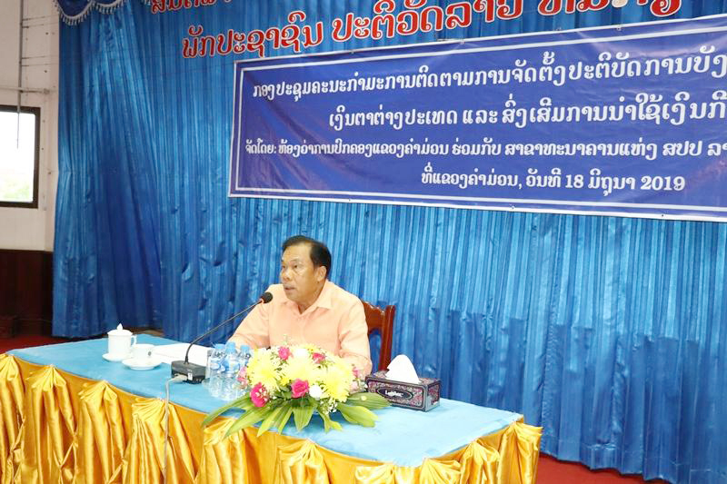 ເພື່ອເປັນການຕີລາຄືນເຖິງໝາກຜົນຂອງການເຄື່ອນໄຫວຈັດຕັ້ງປະຕິບັດວຽກງານຄຸ້ມຄອງເງິນຕາຕ່າງປະເທດ ແລະສົ່ງເສີມການນໍາໃຊ້ເງິນກີບຂອງຄະນະກໍາມະການຕິດຕາມການຈັດຕັ້ງປະຕິບັດການບັງຄັບໃຊ້ລະບຽບການຄຸ້ມຄອງເງິນຕາຕ່າງປະເທດ ແລະສົ່ງເສີມການນໍາໃຊ້ເງິນກີບຂັ້ນແຂວງໃນ 2018 ຜ່ານມາໂດຍສະເພາະ ຢູ່ແຂວງຄໍາມ່ວນ ແມ່ນໄດ້ຈັດກອງ ປະຊຸມສະຫຼຸບວຽກງານການຄຸ້ມ ຄອງເງິນຕາຕ່າງປະເທດ