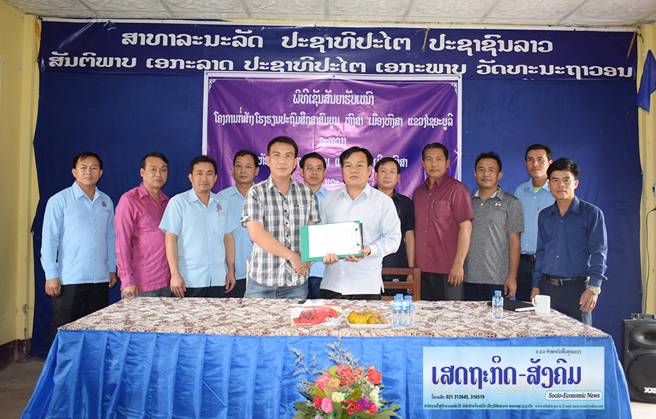 ພິທີເຊັນສັນຍາຮັບເໝົາໂຄງການກໍ່ສ້າງໂຮງຮຽນປະຖົມສົມບູນ ເມືອງຫົງສາ ແຂວງໄຊຍະບູລີ ລະຫວ່າງຫ້ອງການສຶກສາທິການ ແລະກີລາເມືອງຫົງສາ ແລະບໍລິ ສັດ ຈັນທະວົງ ກໍ່ສ້າງຂົວທາງ ແລະ ສ້ອມແປງເຄຫະສະຖານຈໍາກັດໄດ້ຈັດຂຶ້ນໃນຕອນເຊົ້າຂອງວັນທີ 5 ມີນາ 2020
