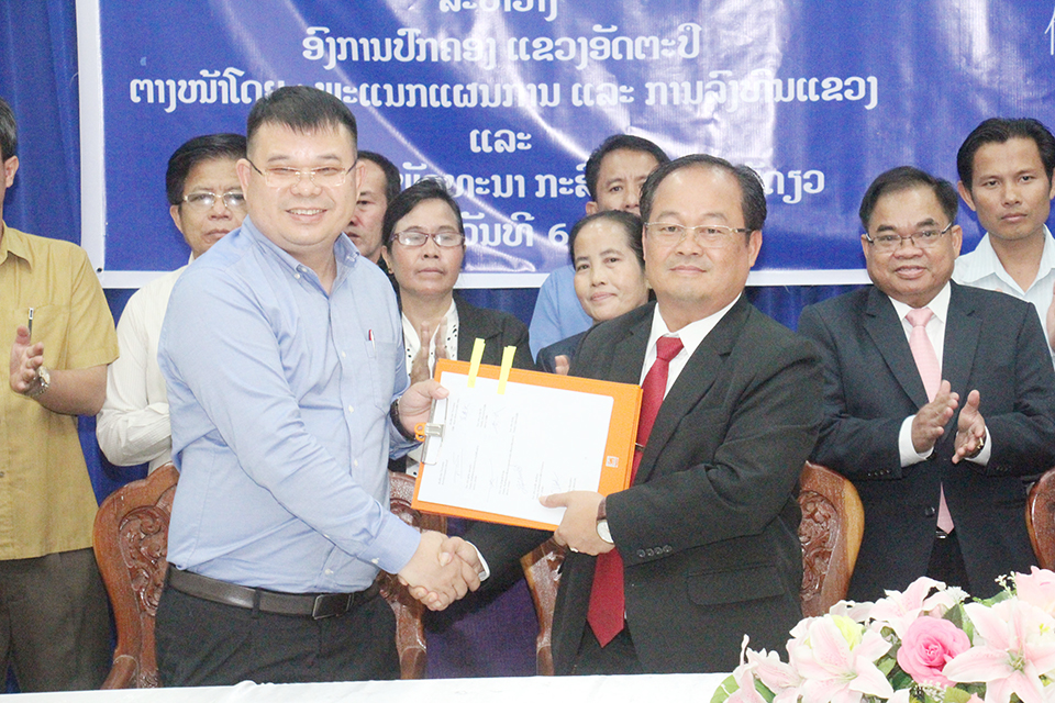 ປະຕິບັດຕາມຂໍ້ຕົກລົງຂອງທ່ານເຈົ້າແຂວງສະບັບເລກທີ 1034/ຈຂອປ ລົງວັນທີ 27 ມິຖຸນາ 2019, ໃນວັນທີ 6 ສິງຫານີ້ພະແນກແຜນການ ແລະການລົງທຶນໄດ້ຈັດພິທີລົງນາມເຊັນສັນຍາຮ່ວມກັບບໍລິສັດສຳປະທານທີ່ດິນເຮັດໂຄງການສົ່ງເສີມປະຊາຊົນປູກພືດກະສິກຳຕາມກົນໄກ 2+3 ໃນເນື້ອທ່ີ່ດິນ 440 ເຮັກຕາ, ໄລຍະສໍາປະທານ 30 ປີ ຢູ່ເຂດບ້ານໄຊດອນໂຂງ ເມືອງສະໜາມໄຊ.