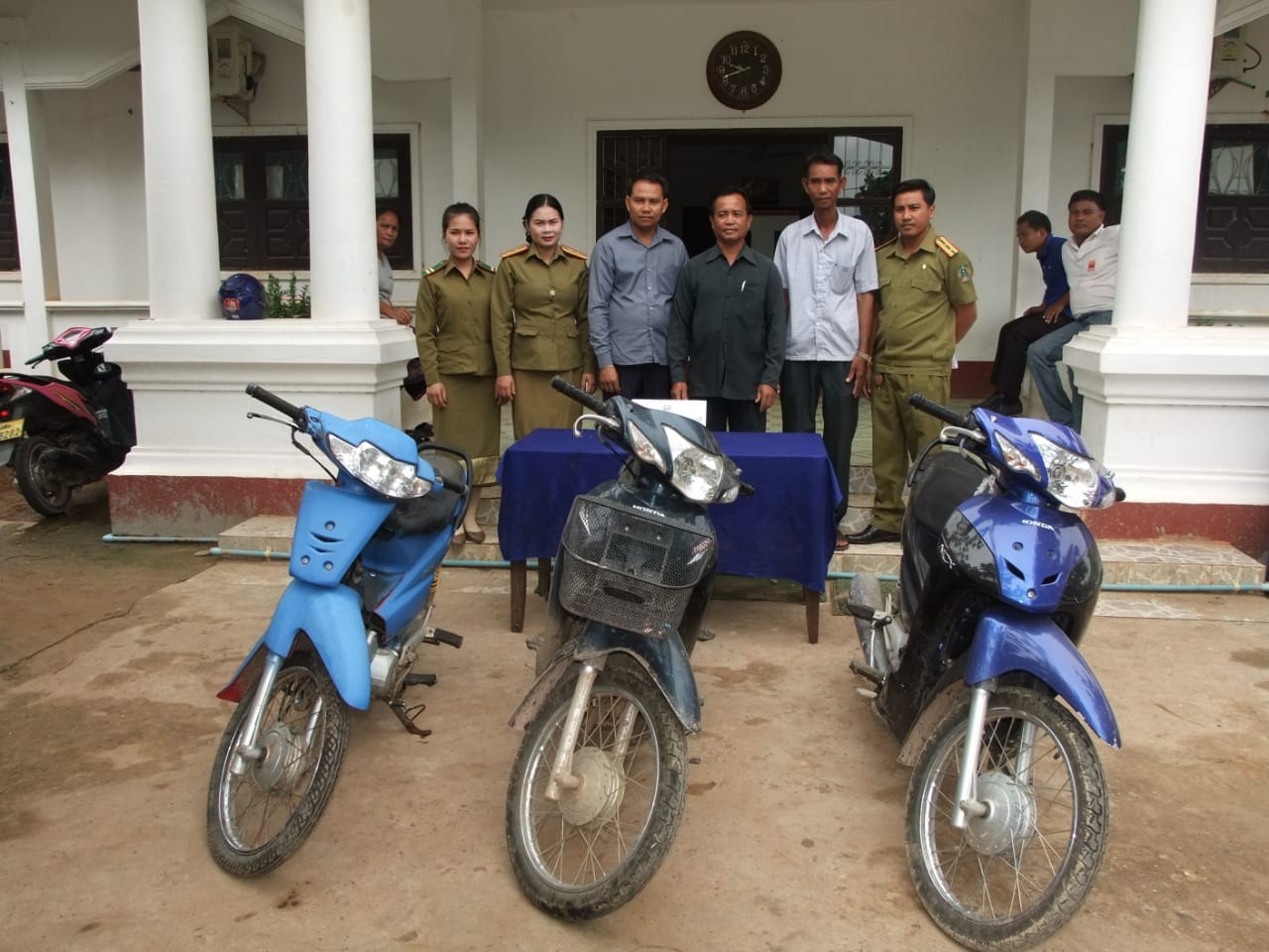 ທ້າຍເດືອນກໍລະກົດຜ່ານມາເຈົ້າໜ້າທີ່ ປກສ ແຂວງອັດຕະປື ມອບຂອງກາງປະເພດລົດຈັກທີ່ຖືກຄົນຮ້າຍລັກໄປຄືນໃຫ້ເຈົ້າຂອງເດີມຈຳນວນ 3 ຄັນ. ກ່າວມອບໂດຍ ທ່ານ ຮທ ຫັດສາຄອນ ວົງສຳລານ ວິຊາການພະແນກສືບສວນ-ສອບສວນ ແລະກ່າວຮັບໂດຍຕາງໜ້າເຈົ້າຂອງລົດຈັກຈຳນວນດັ່ງກ່າວ.