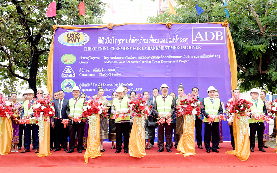 ພິທີເປີດໂຄງການກໍ່ສ້າງຕ້ານເຈື່ອນແຄມແມ່ນໍ້າຂອງໄດ້ຈັດຂຶ້ນຢ່າງເປັນທາງການໃນວັນທີ 1 ສິງຫາ 2019 ທີ່ສາລາແຄມຂອງ, ນະຄອນໄກສອນ ພົມວິຫານ ແຂວງສະຫວັນນະເຂດ,
