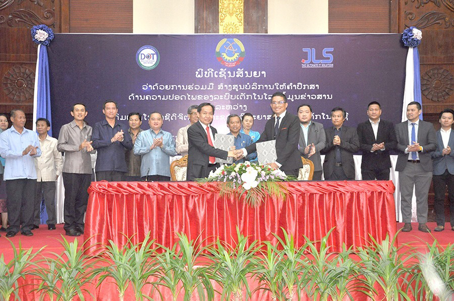 ວັນທີ 25 ກໍລະກົດ 2019 ທີ່ນະຄອນຫຼວງວຽງຈັນໄດ້ມີພິທີເຊັນສັນຍາຮ່ວມມືສ້າງສູນບໍລິການໃຫ້ຄຳປຶກສາດ້ານຄວາມປອດໄພຂອງລະບົບເຕັກໂນໂລຊີຂໍ້ມູນຂ່າວສານໂດຍການລົງນາມຂອງ ທ່ານ ແກ້ວນະຄອນ ໄຊສຸລຽນ ຫົວໜ້າກົມເຕັກໂນໂລຊີດິຈິຕອລ ແລະ ທ່ານ ວົງພູທອນ ສີຈັນທະລາດ ປະທານບໍລິສັດ ເຈແອວເອສ ໄອທີ ໂຊລູເຊີ້ນ ຈຳກັດ.