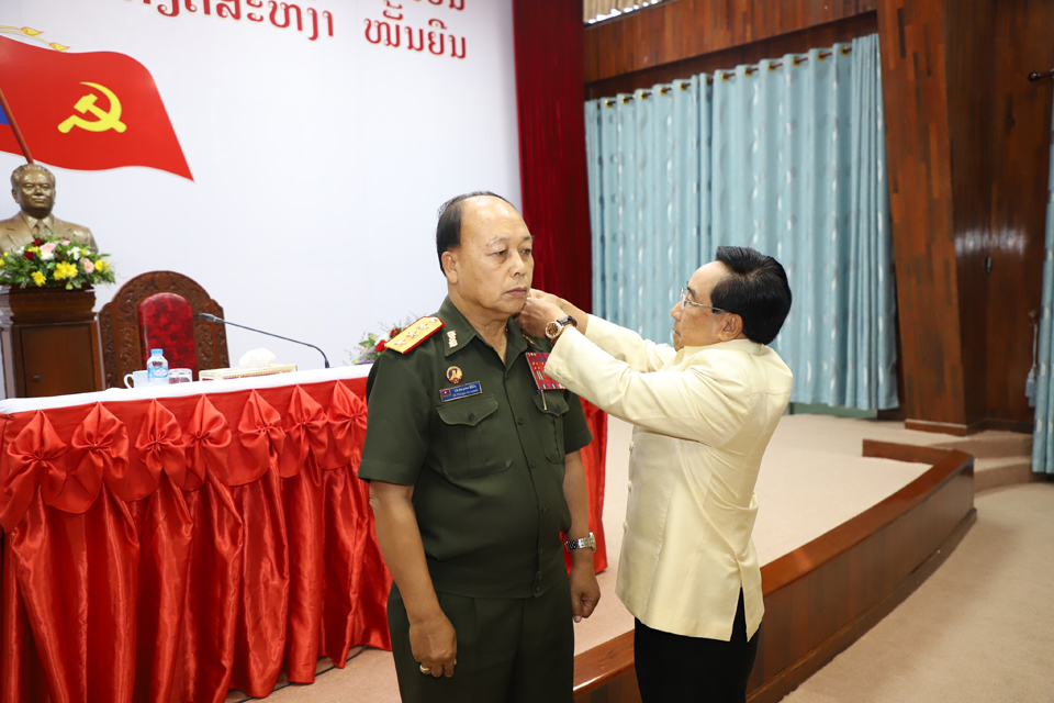 ພິທີປະກາດເລື່ອນຊັ້ນນາຍທະຫານຂັ້ນສູງຈາກຊັ້ນພົນຕີຂຶ້ນຊັ້ນພົນໂທຂອງ ທ່ານ ພົຕ ທອງລອຍ ສິລິວົງ ຮອງລັດຖະມົນຕີກະຊວງປ້ອງກັນປະເທດ, ຫົວໜ້າກົມໃຫຍ່ການເມືອງກອງທັບໄດ້ຈັດຂຶ້ນໃນວັນທີ 25 ກໍລະກົດ 2019