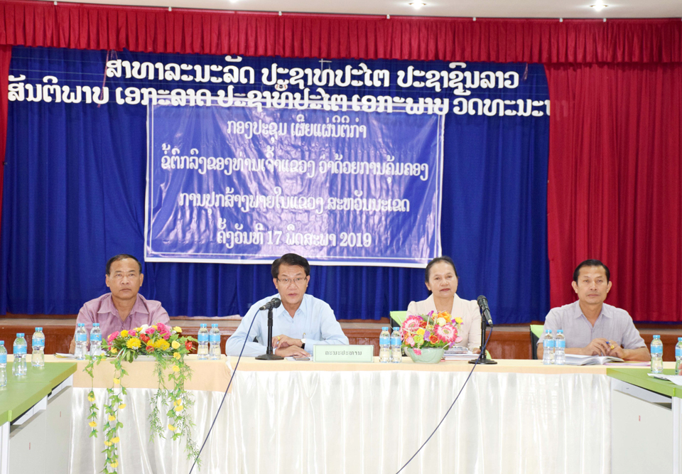 ກອງປະຊຸມຄະນະກຳມະການຕິດຕາມກວດກາການຈັດຕັ້ງປະຕິບັດລະບຽບການຄຸ້ມຄອງເງິນຕາຕ່າງປະເທດ ແລະສົ່ງເສີມການນຳໃຊ້ເງິນກີບຢູ່ແຂວງຫົວພັນໄດ້ໄຂຂຶ້ນໃນວັນທີ 6 ມິຖຸນາ 2019 ຢູ່ຫ້ອງວ່າການແຂວງພາຍໃຕ້