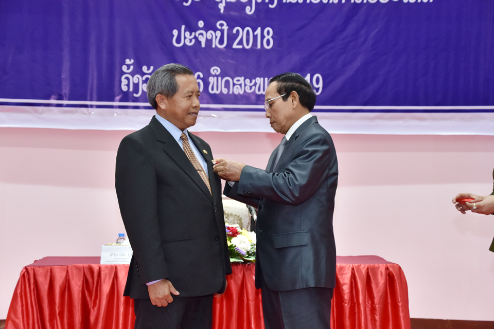 ກະຊວງວິທະຍາສາດ ແລະ ເຕັກໂນໂລຊີ (ກວຕ) ໄດ້ຈັດພິທີປະດັບຫຼຽນໄຊແຮງງານໃຫ້ພະນັກງານການນຳຂອງກະຊວງດັ່ງກ່າວເມື່ອ ວັນທີ 16 ພຶດສະພາຜ່ານມາທີ່ຫ້ອງປະຊຸມສະຖາບັນການຄຸ້ມຄອງວິທະຍາສາດ ແລະ ເຕັກໂນໂລຊີໂດຍໃຫ້ກຽດເຂົ້າຮ່ວມຂອງທ່ານ ບຸນທອງ ຈິດມະນີ ຮອງນາຍົກລັດຖະມົນຕີ,