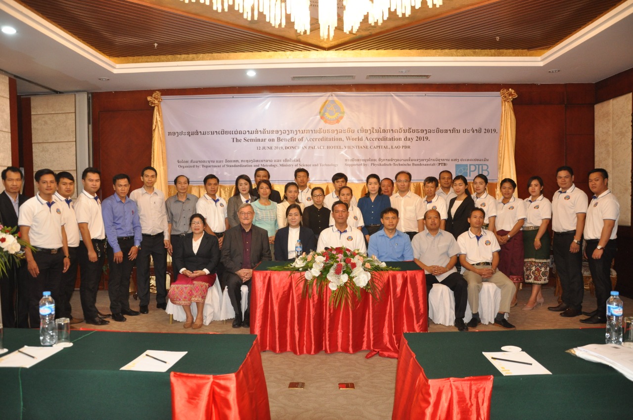 ວັນທີ 12 ມິຖຸນາ 2019 ທີ່ນະຄອນຫຼວງວຽງຈັນ, ສູນຮັບຮອງແຫ່ງຊາດ, ກົມມາດຕະຖານ ແລະວັດແທກ, ກະຊວງວິທະຍາສາດ ແລະເຕັກໂນໂລຊີໄດ້ຈັດກອງປະຊຸມສຳມະນາເຜີຍແຜ່ກ່ຽວກັບຄວາມໝາຍຄວາມສຳຄັນຂອງວຽກງານການຮັບຮອງລະບົບເນື່ອງໃນວັນການຮັບຮອງລະບົບສາກົນປະຈຳປີ 2019 ພາຍໃຕ້ການເປັນປະທານຂອງ ທ່ານ ພຸດທະສັກ ວິຈິດຕຣາ