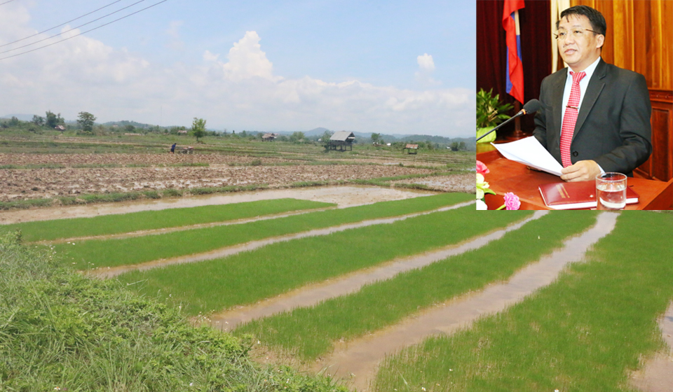 ແຜນການຜະລິດລະດູຝົນປີນີ້ໂດຍສະເພາະແມ່ນການຜະລິດເຂົ້າມີເນື້ອທີ່ທັງໝົດ 44,7 ພັນເຮັກຕາ, ຄາດຄະເນຜົນຜະລິດໃຫ້ໄດ້ 1,97 ແສນໂຕນ, ໃນນີ້ນາປີແຜນສູ້ຊົນ 34,2 ພັນເຮັກຕາ, ຄາດຄະເນສະມັດຕະພາບສະເລ່ຍ 4,75 ໂຕນຕໍ່ເຮັກຕາ, ຄາດຄະເນຜົນຜະລິດ 1,6 ແສນໂຕນ,ເນື້ອທີ່ໄຮ່ເຂົ້າບໍ່ໃຫ້ເກີນ 10,4 ພັນເຮັກຕາ, ສະມັດຕະພາບ 2,19 ໂຕນຕໍ່ເຮັກຕາ, ຄາດຄະເນຜົນຜະລິດ 22.991 ໂຕນ,