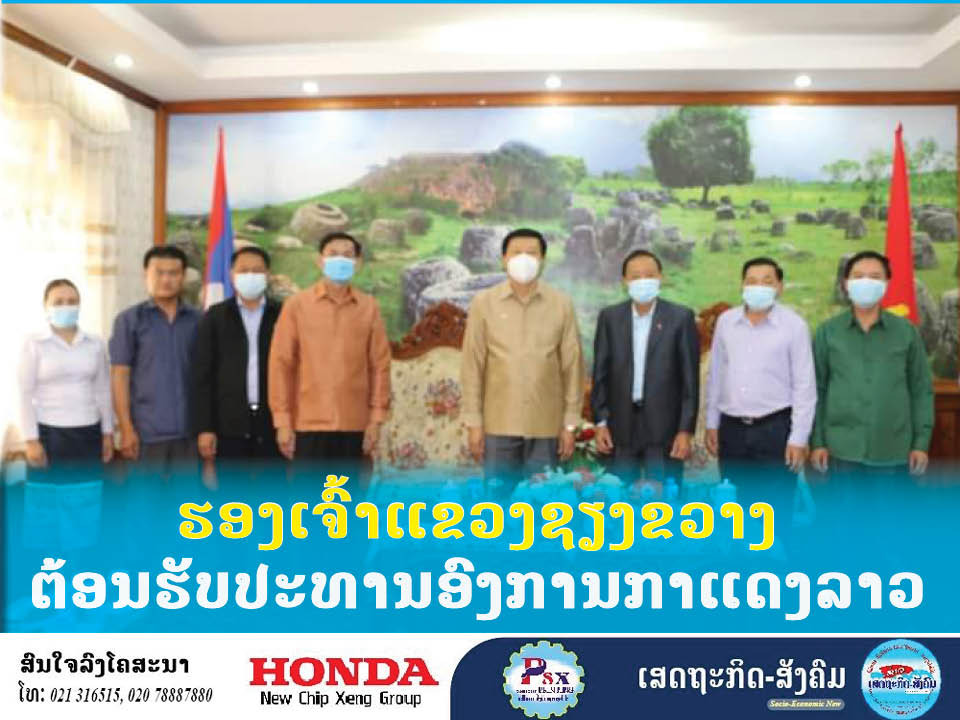 ເມື່ອວັນທີ 20 ສິງຫາ 2021 ທ່ານ ໜໍບີຫາ ຕົ່ງປາວ ຮອງເຈົ້າແຂວງຊຽງຂວາງ ໄດ້ຕ້ອນຮັບ ທ່ານ ດຣ. ພູທອນ ເມືອງປາກ ປະທານອົງການກາແດງລາວເຂົ້າພົບປະລາຍງານການເຄື່ອນໄຫວວຽກງານກາແດງ ແລະຂໍທິດຊີ້ນຳປຶກສາຫາລື ແລະພັດທະນາວຽກງານກາແດງໃນຕໍ່ໜ້າ.