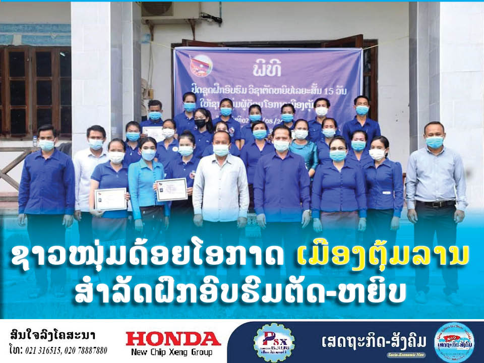 ພິທີປິດຊຸດອົບຮົມວິຊາຕັດຫຍິບໄລຍະສັ້ນໃຫ້ຊາວໜຸ່ມຜູ້ດ້ອຍໂອກາດຂອງເມືອງຕຸ້ມລານແຂວງສາລະວັນໄດ້ຈັດຂຶ້ນໃນທ້າຍອາທິດຜ່ານມາ, ທີ່ສູນອົບຮົມວິຊາຊີບສະຫະພັນແມ່ຍິງເມືອງຕຸ້ມລານ ໂດຍການເຂົ້າຮ່ວມຂອງທ່ານ ຈັນທະວອນ ສີຫາຈັກ ເລຂາຄະນະບໍລິຫານງານຊາວໜຸ່ມ ແຂວງສາລະວັນ, ມີ