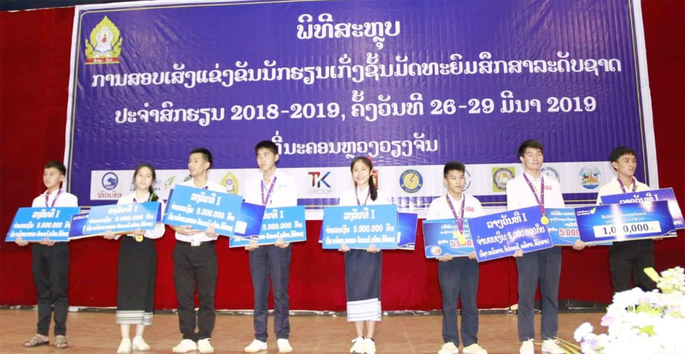 ສຳເລັດຈົບງາມການສອບເສັງນັກຮຽນເກັ່ງຊັ້ນມັດທະຍົມສຶກສາລະດັບຊາດຈັດທີ່ຈັດຂຶ້ນໃນລະຫວ່າງວັນທີ 26-28 ມິນາຜ່ານມາທີ່ສະໂມສອນມະຫາວິທະ ຍາໄລແຫ່ງຊາດ ແລະໄດ້ມີການປະກາດຜົນຜູ້ຊະນະເລີດວັນທີ 29 ມີນາ 2019 ໂດຍໃຫ້ກຽດເຂົ້າຮ່ວມມອບລາງວັນໃຫ້ນ້ອງນັກຮຽນ ທ່ານ ຄຳຜາຍ ສີສະຫວັນ ຮອງລັດຖະມົນຕີກະຊວງສຶກສາທິການ ແລະກີລາພ້ອມດ້ວຍພາກສ່ວນກ່ຽວຂ້ອງຕະຫຼອດຄູອາຈານນ້ອງນັກຮຽນເຂົ້າຮ່ວມ.