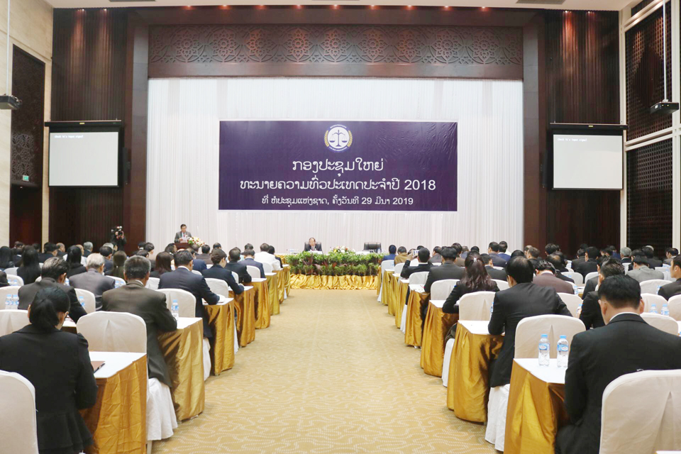 ກອງປະຊຸມສະພາທະນາຍຄວາມທົ່ວປະເທດປະຈຳປີ 2018 ໄດ້ຈັດຂຶ້ນວັນທີ 29 ມີນາ 2019 ທີ່ຫໍປະຊຸມແຫ່ງຊາດພາຍໃຕ້ເປັນປະທານຂອງທ່ານ ໄຊສີ ສັນຕິວົງ ລັດຖະມົນກະຊວງຍຸຕິທຳ, ທ່ານ ຄຳໃສ ສຸລິນທອນ ປະທານຄະນະບໍລິຫານສະພາທະນາຍຄວາມລາວບັນດາສະຖາບັນອ້ອມຂ້າງກະຊວງຍຸຕິທໍາບັນ ດາກົມສືບສວນ-ສອບສວນ, ຄະນະບໍລິຫານງານສະພາທະນາຍຄວາມ, ສະມາຊິກທະນາຍຄວາມໃນທົ່ວປະເທດເຂົ້າຮ່ວມ.