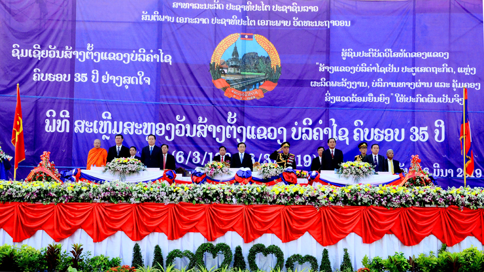 ງານສະເຫຼີມສະຫຼອງວັນສ້າງຕັ້ງ ແຂວງບໍລິຄໍາໄຊ ຄົບຮອບ 35 ປີ (6 ມີນາ 1984-6 ມີນາ 2019) ໄດ້ຈັດຂຶ້ນຢ່າງຍິ່ງໃຫຍ່ໃນຕອນແລງຂອງວັນທີ 6 ມີນານີ້ທີ່ເດ່ີນສວນອານຸສາວະລີ ທ່ານ ສີສົມພອນ ລໍວັນໄຊ, ເຊິ່ງໃຫ້ກຽດເຂົ້າຮ່ວມໃນງານທີ່ມີຄວາມໝາຍຄວາມສຳຄັນໃນຄັ້ງນີ້ໂດຍທ່ານ ພັນຄໍາ ວິພາວັນ ຮອງປະທານປະເທດ, ມີຄະນະພັກອໍານາດການປົກຄອງແຂວງ, ພະເຖລານຸເຖລະ, ພະນັກງານອາວຸໂສບຳນານ