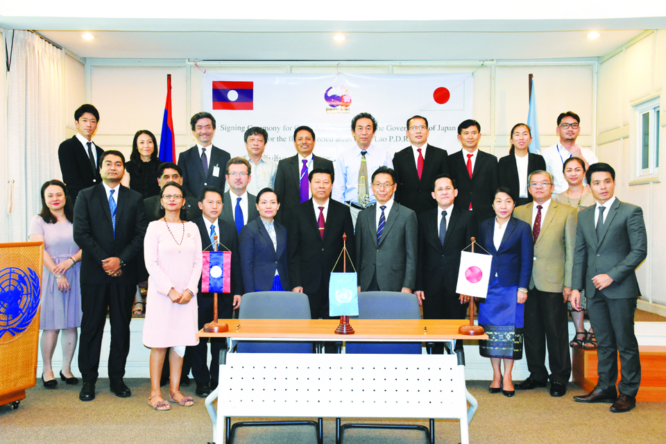 ໃນວັນທີ 6 ມີນາ 2019, ທີ່ຫ້ອງການອົງການສະຫະປະຊາຊາດໄດ້ມີພິທີເຊັນສັນຍາໂຄງການຊ່ວຍເຫຼືອລ້າຈາກລັດຖະບານຍີ່ປຸ່ນເພື່ອເປັນການຟື້ນຟູຄວາມເສຍຫາຍທີ່ ສປປ ລາວ ໄດ້ຮັບໃນ ປີຜ່ານມາ, ຈຳນວນ 4 ໂຄງການມູນຄ່າ 7,6 ລ້ານໂດລາ ຫຼືປະມານ 60 ຕື້ກວ່າກີບ