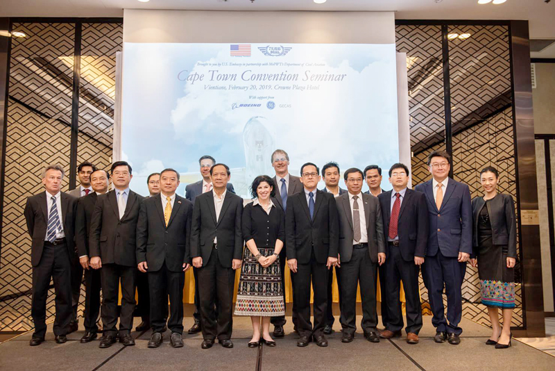 ກອງປະຊຸມສຳມະນາກ່ຽວກັບສົນທິສັນຍາເຄັບທາວ Cape Town Convention ເພື່ອປຶກສາຫາລືແນວທາງການປະຕິບັດທີ່ດີທີ່ສຸດເພື່ອສ້າງຄວາມເຂັ້ມແຂງໃຫ້ແກ່ບັນຍາກາດທາງດ້ານທຸລະກິດທີ່ກ່ຽວຂ້ອງກັບຜູ້ຖືກຳມະສິດເປັນເຈົ້າຂອງເຮືອບິນ ແລະການສະໜອງທຶນຢູ່ໃນ ສປປ ລາວ ໄດ້ຈັດຂຶ້ນໃນວັນທີ 20 ກຸມພາ 2019 ທີ່ນະຄອນຫຼວງວຽງຈັນ