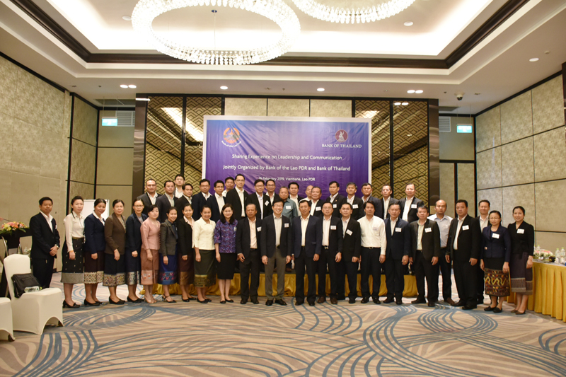 ທະນາຄານແຫ່ງ ສປປ ລາວ ຮ່ວມກັບທະນາຄານແຫ່ງປະເທດໄທໄດ້ຈັດຕັ້ງການສຳມະນາພາຍໃຕ້ຫົວຂໍ້ “ພາວະຄວາມເປັນຜູ້ນຳ ແລະການສື່ສານ” ໃນວັນ ທີ 19 ກຸມພາ 2019 ທີ່ນະຄອນຫຼວງວຽງຈັນ ໂດຍການໃຫ້ກຽດເຂົ້າຮ່ວມຂອງ ທ່ານ ສອນໄຊ ສິດພະໄຊ ຜູ້ວ່າການທະນາຄານແຫ່ງ ສປປ ລາວ ແລະທ່ານ ໄພບູນ ກິດຕິສີຣິກັງວານ ຮອງຜູ້ວ່າການທະນາຄານແຫ່ງປະເທດໄທ