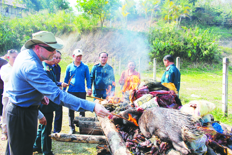ວັນທີ 13 ກຸມພາ 2019 ທີ່ແຂວງຫຼວງນໍ້າທາ ໄດ້ຈັດພິທີຈູດທຳລາຍສີ້ນສ່ວນສັດປ່າທີ່ຢຶດນຳພໍ່ຄ້າ ແລະແມ່ຄ້າພາຍໃນແຂວງຫຼວງນ້ຳທາເຂົ້າຮ່ວມພິທີ ຈູດທຳລາຍສີ້ນສ່ວນສັດປ່າມີທ່ານ ທວງ ນາມວົງສາ ຮອງຫົວໜ້າພະແນກກະສິກຳ ແລະປ່າໄມ້ແຂວງ, ທ່ານ ພັນທອງ ຈັນທະລັງສີ ຮອງຫົວໜ້າກົມກວດກາ ປ່າໄມ້, ມີຫົວໜ້າຮອງຫົວໜ້າກອງ, ຫົວໜ້າຂະແໜງ-ຮອງຂະແໜງ, ຄຸ້ມຄອງຕະຫຼາດ ແລະນາຍບ້ານ 8 ບ້ານເທສະບານເຂົ້າຮ່ວມ.