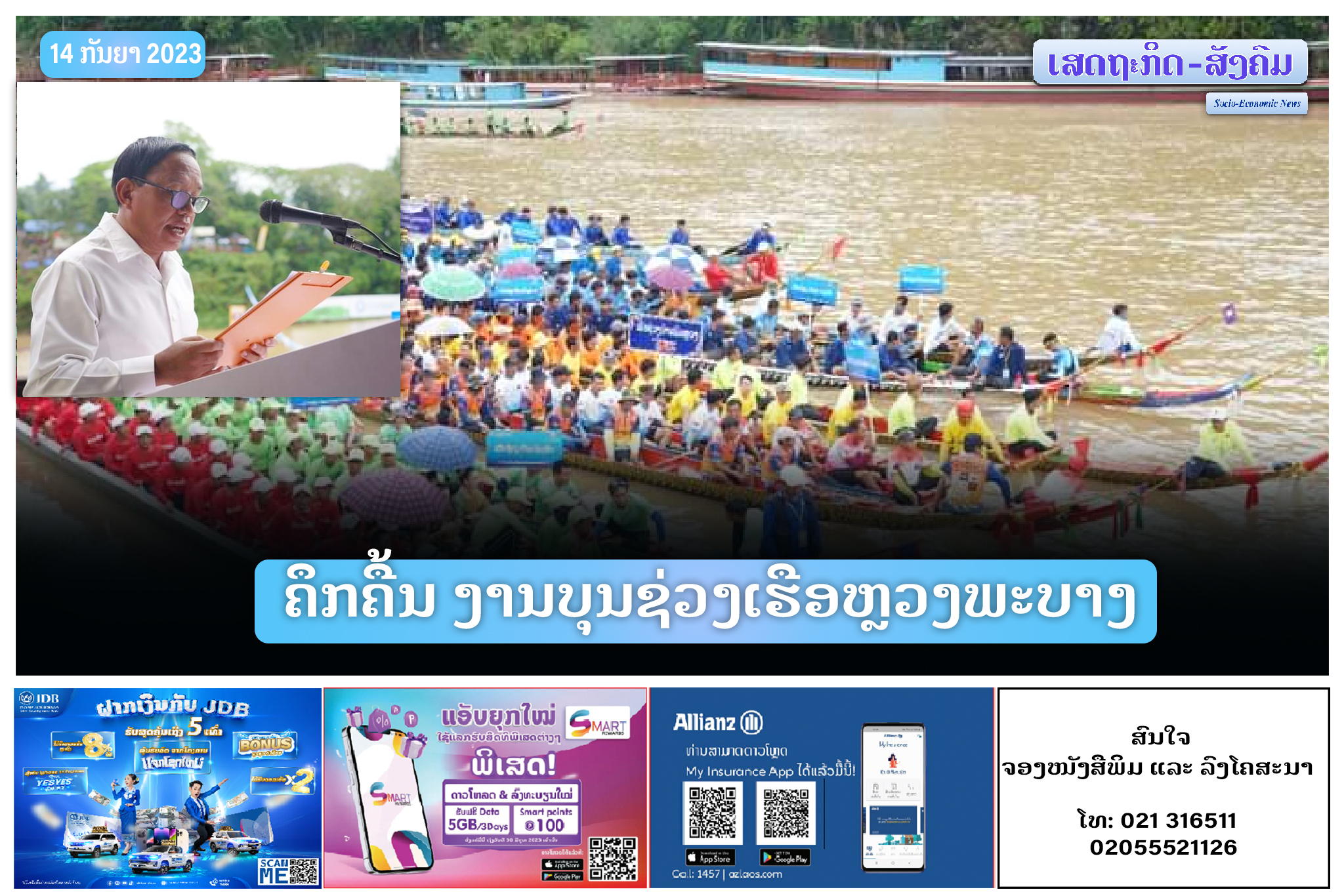 ນະຄອນຫຼວງພະບາງ ໄດ້ຈັດບຸນຊ່ວງເຮືອປະເພນີປະຈໍາປີ 2023 ຂຶ້ນວັນທີ 14 ກັນຍານີ້ ໃຫ້ກຽດເຂົ້າຊົມມີທ່ານ ສົມສະຫວາດ ເລັ່ງສະຫວັດ ອາດິດຮອງນາຍົກລັດຖະມົນຕີ, ພ້ອມດ້ວຍການນຳຂັ້ນຂວງ, ຂັ້ນນະຄອນ-ເມືອງ, ແຂກຮັບເຊີນ, ມວນຊົນທັງພາຍໃນ ແລະຕ່າງປະເທດ.