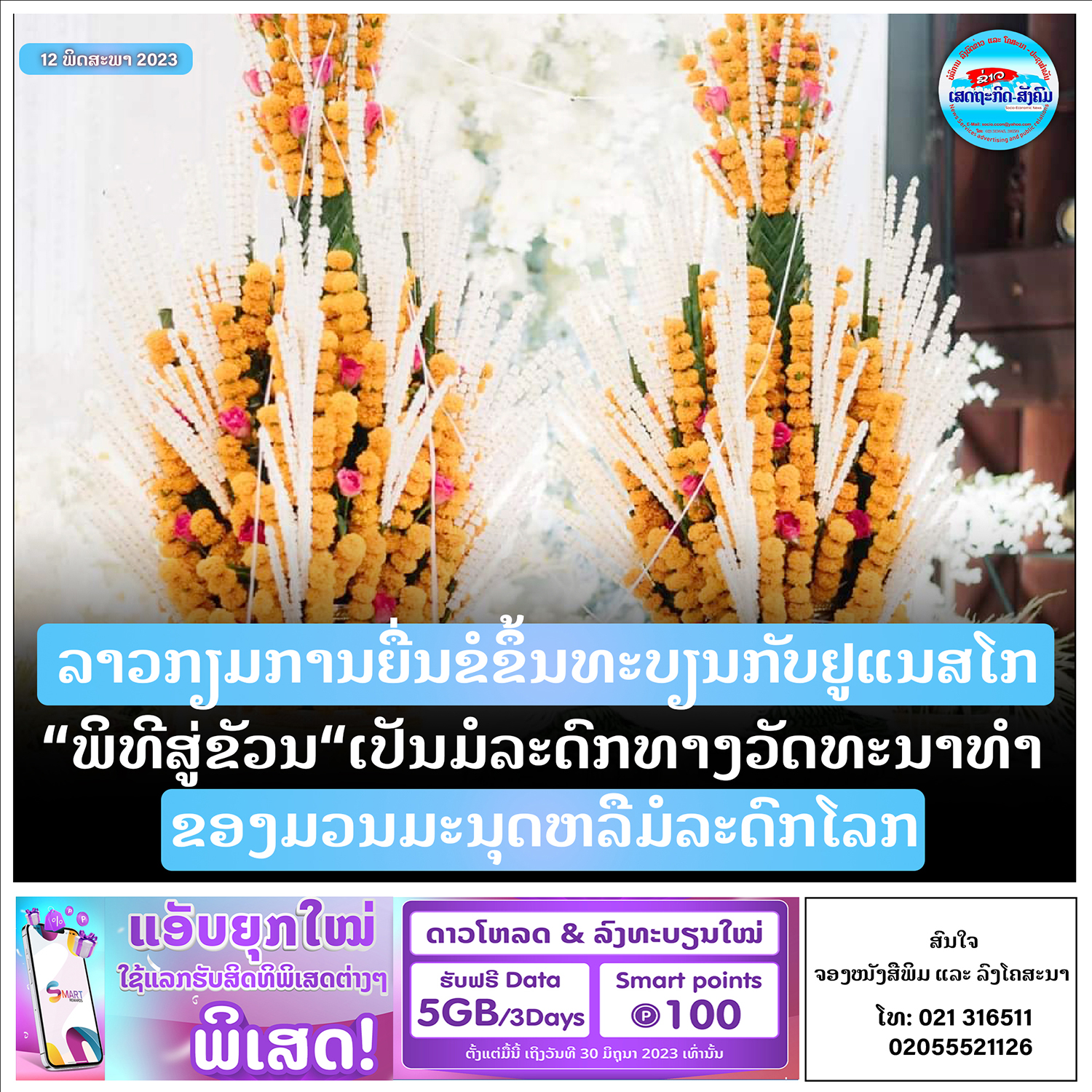 ກົມພຸດທະສາດສະໜາ ສູນກາງແນວລາວສ້າງຊາດຮ່ວມກັບບໍລິສັດລາວນີວເພ ເທັກໂນໂລຊີ ຈອຍເວັນເຈີ ຈໍາກັດເປີດນໍາໃຊ້ແອັບພຸດທະສາດສະໜາລາວໃນຕອນບ່າຍວັນທີ 23 ກຸມພາ 2023 ທີ່ສູນກາງແນວລາວສ້າງຊາດ ນະຄອນຫຼວງວຽງຈັນ,