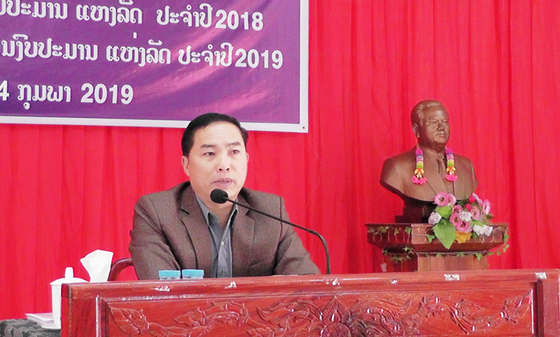 ໃນວັນທີ 4 ກຸມພາ 2019 ຫ້ອງການ-ການເງິນເມືອງຫົງ ສາ ແຂວງໄຊຍະບູລີ ໄດ້ຈັດກອງ ປະຊຸມສະຫຼຸບການຈັດຕັ້ງປະຕິບັດ ແຜນງົບປະມານແຫ່ງລັດ ປະຈຳ ປີ 2018 ແລະແຜນງົບປະມານ ແຫ່ງລັດປີ 2019 ຂຶ້ນທີ່ສະໂມ ສອນຂອງເມືອງ