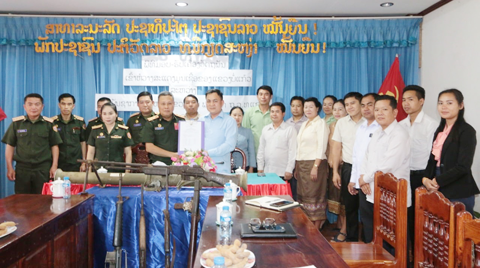 ພິທີມອບ-ຮັບອາວຸດເສິກຂອງຈັກກະພັດຜູ້ຮຸກຮານເຂົ້າຫໍວາງສະແດງມູນເຊື້ອແຂວງບໍ່ແກ້ວໄດ້ຈັດຂຶ້ນວັນທີ 22 ມີນາ 2021 ທີ່ແຂວງດັ່ງກ່າວລະຫວ່າງທ່ານ ພັທ ທອງໄຂ ສີຍະລັດ ຫົວໜ້າກອງບັນຊາການທະຫານແຂວງເປັນຜູ້ກ່າວມອບ,