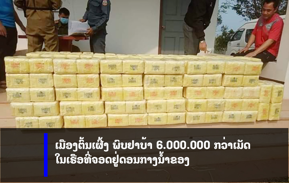 ເຈົ້າໜ້າທີ່ຕໍາຫຼວດປະຈໍາຈຸດກວດກາບ້ານນໍ້າເກິ່ງ ເມືອງຕົ້ນເຜີ້ງ ແຂວງບໍ່ແກ້ວ ໄດ້ກວດພົບຢາບ້າ ຈໍານວນ 6.000.000 ກວ່າເມັດ ໃນເຮືອກາບທີ່ຈອດໄວ້ຢູ່ແຄມດອນກາງນໍ້າຂອງເຂດບ້ານນໍ້າຍອນ ເມືອງຕົ້ນເຜີ້ງ ໃນວັນທີ 10 ມີນາ 2021; ສ່ວນເຈົ້າຂອງເຮືອແມ່ນເອົາຕົວຫຼົບໜີໄປກ່ອນ.