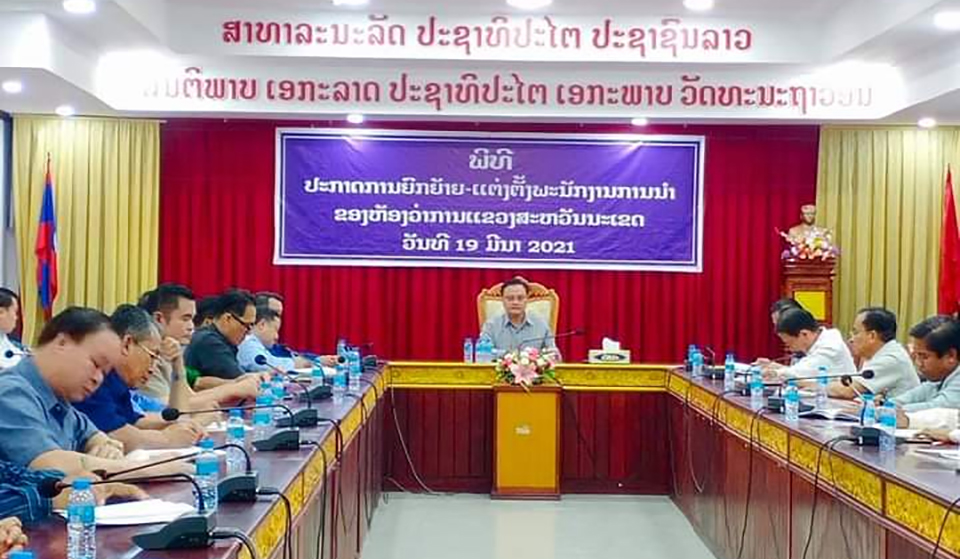 ໃນວັນທີ 19 ມີນາ 2021 ທີ່ຫ້ອງປະຊຸມຂອງຫ້ອງວ່າການປົກຄອງແຂວງສະຫວັນນະເຂດໄດ້ຈັດພິທີປະກາດຍົກຍ້າຍ-ແຕ່ງຕັ້ງພະນັກງານການນຳຂອງຫ້ອງວ່າການປົກຄອງແຂວງຂຶ້ນຢ່າງເປັນທາງການ, ໂດຍການເປັນປະທານຂອງທ່ານ ສັນຕິພາບ ພົມວິຫານ ເຈົ້າແຂວງສະຫວັນນະເຂດ.