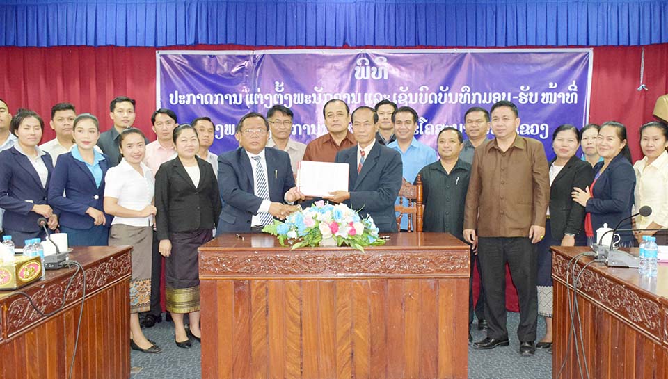 ທີ່ຫ້ອງປະຊຸມຫ້ອງວ່າການປົກຄອງແຂວງສະຫວັນນະເຂດໃນວັນທີ 4 ມີນາ 2021, ໄດ້ຈັດພິທີປະກາດແຕ່ງຕັ້ງພະນັກງານ ແລະເຊັນບົດບັນທຶກການມອບ-ຮັບໜ້າທີ່ຂອງພະນັກງານການນຳຂັ້ນສູງຄະນະໂຄສະນາອົບຮົມແຂວງ