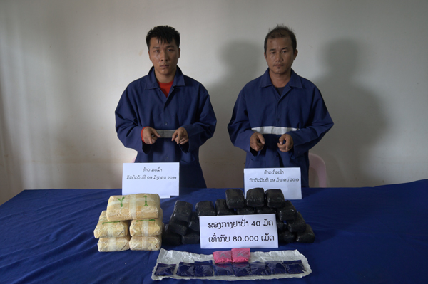 ວັນທີ9ມັງກອນ 2019 ຜ່ານມານີ້ເຈົ້າໜ້າທີ່ຕຳຫຼວດພະແນກສະກັດກັ້ນ ແລະຕ້ານຢາເສບຕິດ ປກສ ແຂວງວຽງຈັນ ໄດ້ລົງແກ້ໄຂສະພາບປາກົດການຫຍໍ້ທໍ້ຢູ່ຂອບເຂດເມືອງໂພນ ແຂວງວຽງຈັນ ໃນທີ່ສຸດກໍ່ສາມາດຈັບຕົວເປົ້າໝາຍໄດ້ 2 ຄົນ ຄື: ທ້າວ ມະເລົ່າ ອາຍຸ 22 ປີ ຊາວ ນາ ຢູ່ບ້ານຫ້ວຍສາລາ ເມືອງຫ້ວຍຊາຍ ແຂວງບໍ່ແກ້ວ ພ້ອມຂອງກາງຢາບ້າ 40 ມັດ ເທົ່າກັບ 80 ພັນເມັດ ແລະທ້າວ ກົ່ວເລົ່າ ອາຍຸ 43 ປີ ຊາວນາຢູ່ບ້ານໂພນແຍງ ເມືອງເຟືອງ ແຂວງວຽງຈັນ ພ້ອມຂອງກາງຢາບ້າຈຳນວນ 8 ເມັດ, ທັງສອງໄດ້ຮ່ວມກັນຊື້-ຂາຍຢາເສບຕິດ ປະເພດຢາບ້າມາດຳເນີນການສືບສວນ-ສອບສວນ.