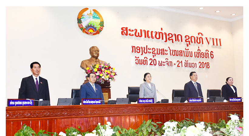 ກອງປະຊຸມສະໄໝສາມັນເທື່ອທີ 6 ຂອງສະພາແຫ່ງຊາດຊຸດທີ VIII ໄດ້ ອັດລົງດ້ວຍຜົນສຳເລັດໃນວັນທີ 21 ທັນວາຜ່ານມາຫຼັງຈາກທີ່ໄດ້ທີ່ດຳເນີນມາແຕ່ວັນທີ 20 ພະຈິກ 2018 ພາຍໃຕ້ການເປັນປະທານຂອງທ່ານນາງປານີຢາທໍ່ຕູ້ປະທານສະພາແຫ່ງຊາດ, ໂດຍໃຫ້ກຽດເຂົ້າຮ່ວມຂອງທ່ານບຸນຍັງວໍລະຈິດປະທານປະເທດ, ພ້ອມນີ້ກໍມີທ່ານທອງລຸນສີສຸລິດນາຍົກລັດຖະມົນ ຕີ, ບັນດາຜູ້ນຳ, ອະດີດການນຳຂັ້ນສູງ ພັກ-ລັດ, ບັນດາສະມາຊິກສະພາແຫ່ງ ຊາດ, ພ້ອມດ້ວຍພາກສ່ວນທີ່ກ່ຽວຂ້ອງເຂົ້າຮ່ວມ.