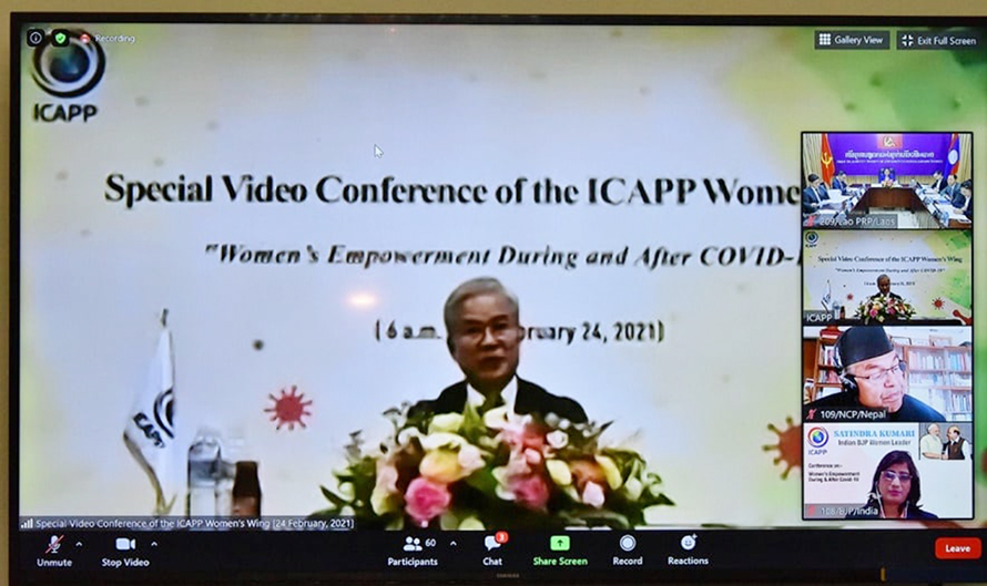 ໃນວັນທີ 24 ກຸມພາ 2021 ຄະນະຜູ້ແທນພັກ ປປ ລາວ ນໍາໂດຍສະຫາຍ ນາງບັນດິດ ປະທຸມວັນ ຮອງປະທານສູນກາງສະຫະພັນແມ່ຍິງລາວພ້ອມດ້ວຍຄະນະໄດ້ເຂົ້າຮ່ວມກອງປະຊຸມພິເສດຂອງອົງການແມ່ຍິງບັນດາພັກການເມືອງໃນອາຊີ ໄອແຄັບ ຫຼື ICAPP ຜ່ານວິດີໂອທາງໄກ,