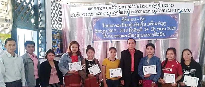 ວັນທີ 24 ມັງກອນ ຜ່ານ ມາ ທີ່ສະໂມສອນບ້ານຫາດສາ ເມືອງຮ້ຽມ ແຂວງຫົວພັນ ໄດ້ຈັດ ພິທີມອບ-ຮັບໃບຈົບຊັ້ນມັດທະຍົມຕອນຕົ້ນບໍາລຸງໃຫ້ແກ່ນັກຮຽນທີ່ຮຽນຈົບໃນສົກປີ 2017-2018 ໂດຍການເປັນປະທານຂອງທ່ານ ແສງພອນ ບຸນມະນີຈັນ ຮອງຫົວໜ້າຫ້ອງການສຶກສາທິການ ແລະກີລາ