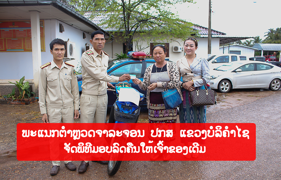 ວັນທີ 9 ກຸມພາ 2021 ເຈົ້າໜ້າທີ່ພະແນກຕໍາຫຼວດຈາລະຈອນ ປກສ ແຂວງບໍລິຄໍາໄຊ ຈັດພິທີມອບ-ຮັບລົດ ຈັກຮອນດ້າເວບຮ້ອຍ ສີຟ້າດໍາ ໝາຍເລກ ທະບຽນ ຈຄ 5845 ບໍລິຄໍາໄຊ