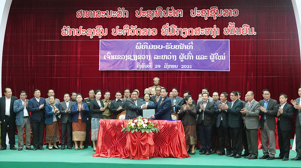 ພິທີມອບ-ຮັບໜ້າທີ່ເຈົ້າ ແຂວງຊຽງຂວາງ ລະຫວ່າງຜູ້ເກົ່າ ແລະຜູ້ໃໝ່ໄດ້ຈັດຂຶ້ນໃນວັນທີ 29 ມັງກອນ 2021 ຢູ່ທີ່ຫ້ອງວ່າການແຂວງໂດຍການເປັນປະທານຂອງ ທ່ານ ນາງ ປານີຢາທໍ່ຕູ້ ກຳມະການກົມການເມືອງສູນກາງພັກປະທານສະພາແຫ່ງຊາດ, ມີການນຳຂອງແຂວງ,