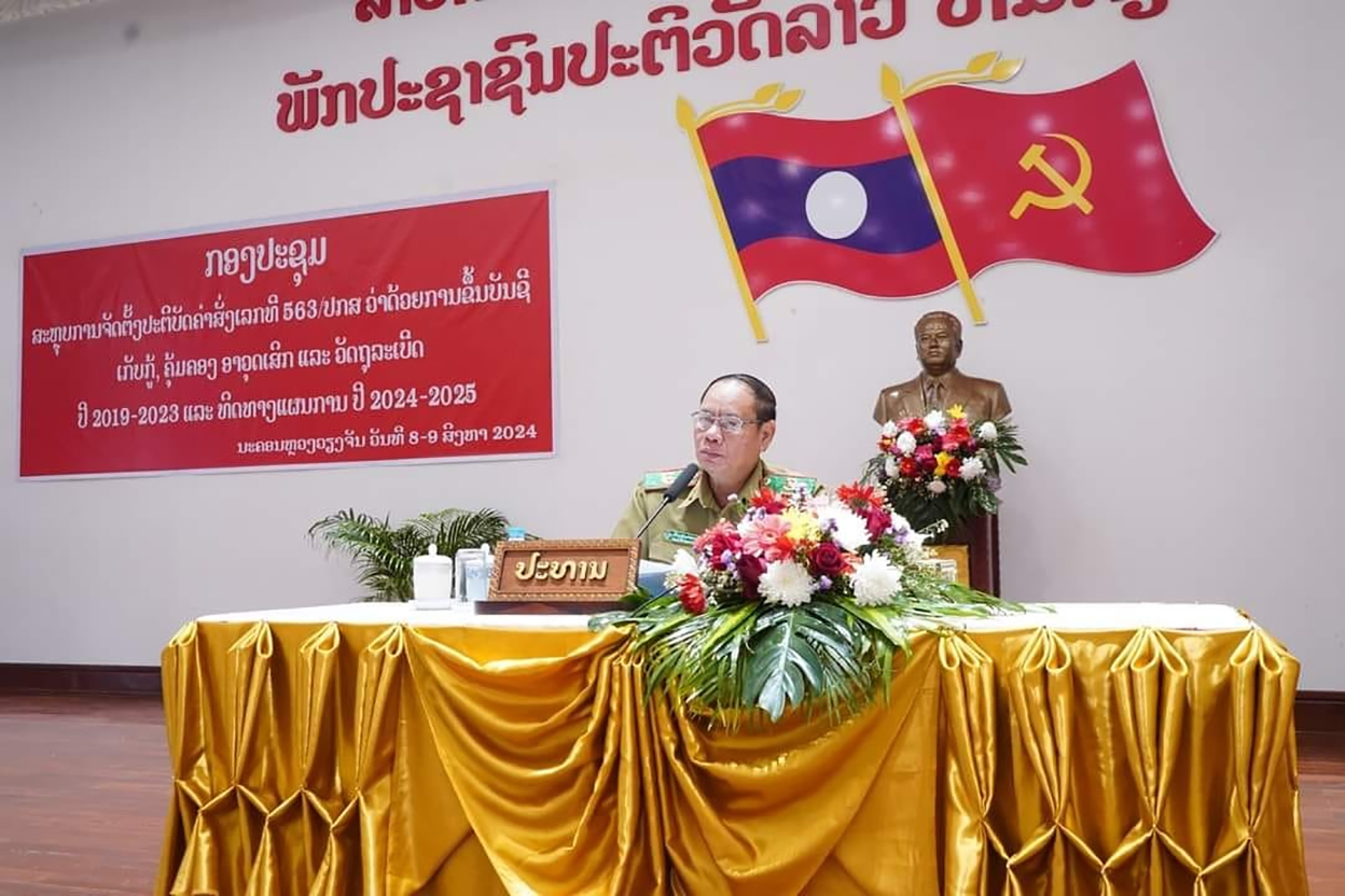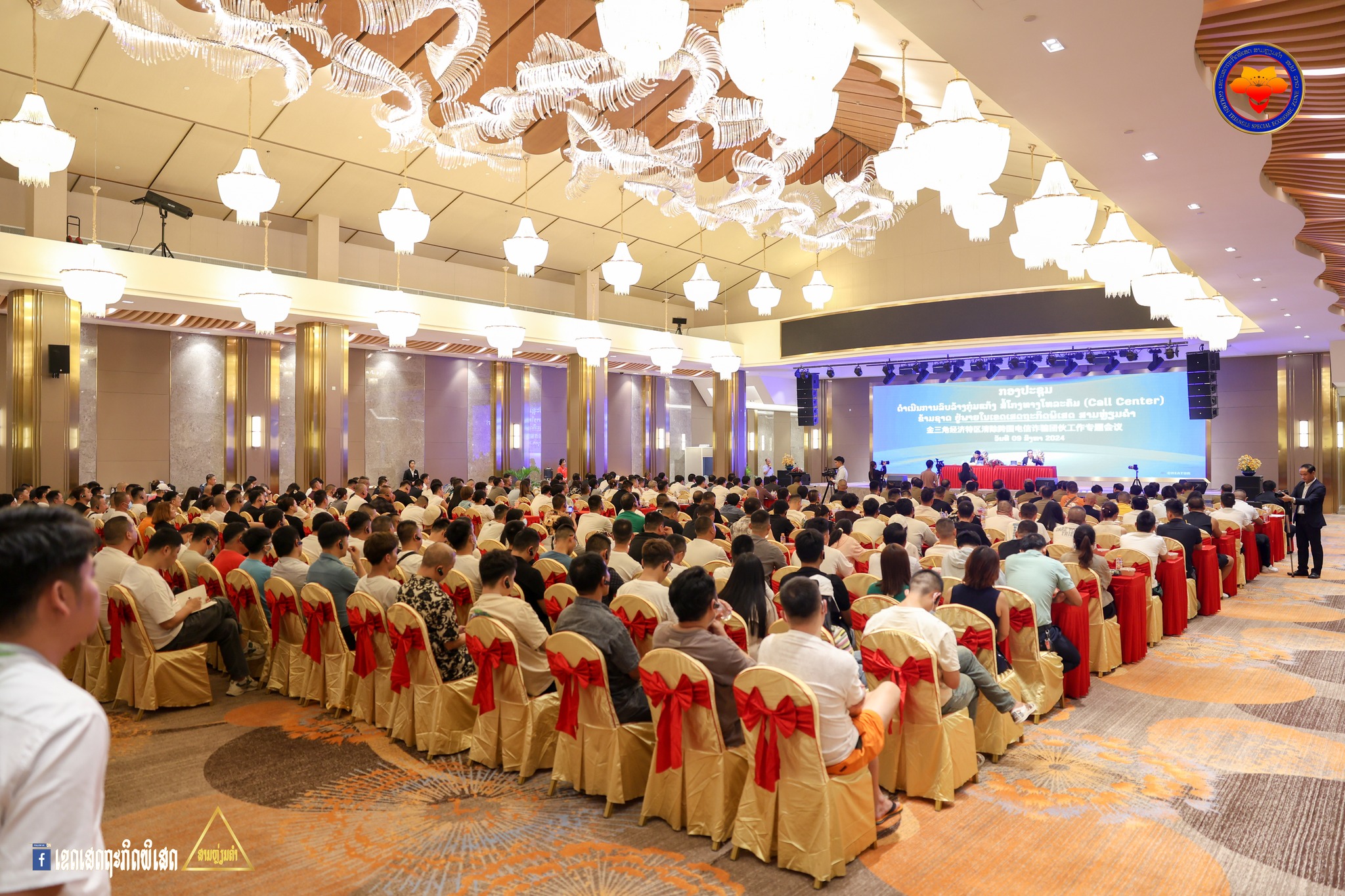 ກອງປະຊຸມ ດຳເນີນການລົບລ້າງກຸ່ມແກ້ງ ສໍ້ໂກງທາງໂທລະຄົມ (Call Center) ຂ້າມຊາດ ຢູ່ໃນເຂດເສດຖະກິດພິເສດສາມຫລ່ຽມຄຳ ໄດ້ຈັດຂຶ້ນ ໃນວັນທີ 9 ສິງຫາ 2024