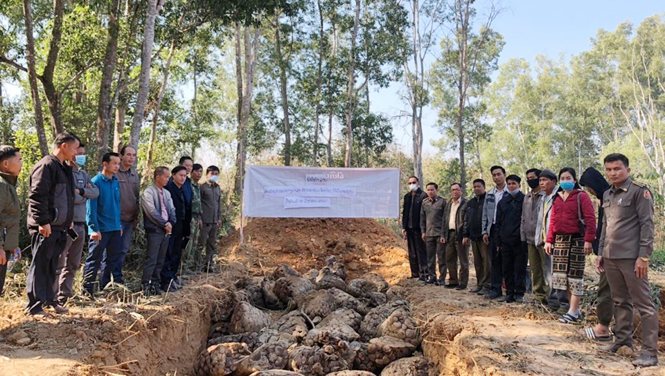 ວັນທີ 19 ມັງກອນ ຜ່ານມານີ້ຫ້ອງການອຸດສາຫະກຳ ແລະການຄ້າເມືອງນໍ້າບາກ ແຂວງຫຼວງພະບາງ ຮ່ວມກັບບໍລິວັດຊີໂນລາວຈີລັນພັດທະນາຈຳກັດໄດ້ຈັດພິທີທຳລາຍສີນຄ້າປະເພດຢາງພາລາກ້ອນທີ່ມີສີ່ງເຈືອປົນເຂົ້າຮວ່ມມີທ່ານ ຫຸມເພັງ ໂທທິທຳ ປະທານກວດກາພັກ-ລັດເມືອງ,
