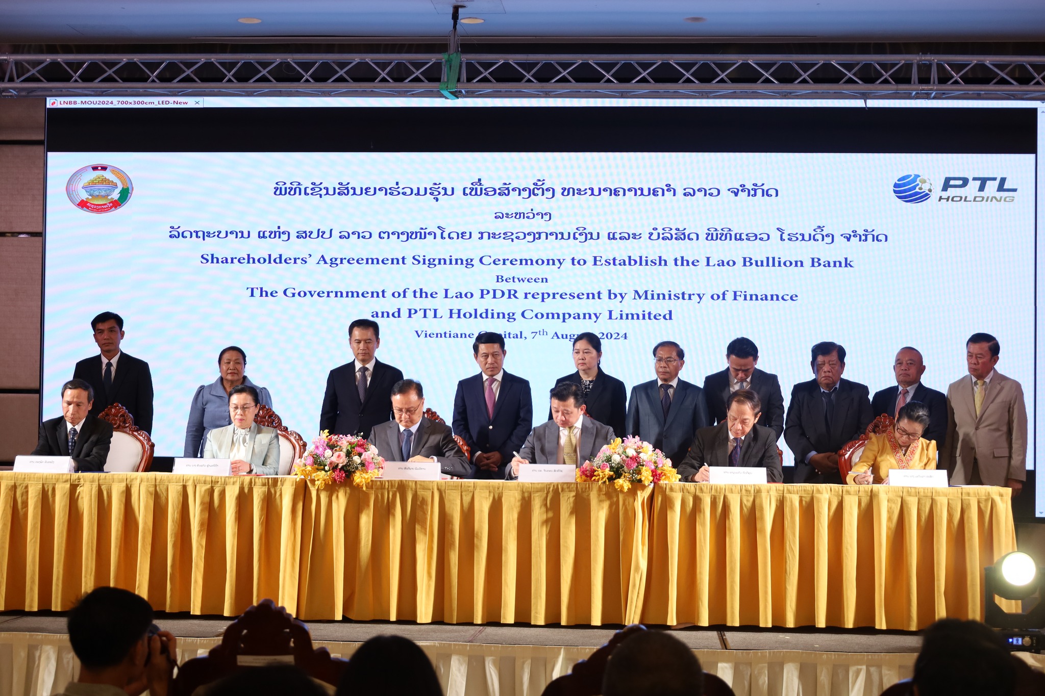ພິທີເຊັນສັນຍາຮ່ວມຮຸ້ນເພື່ອສ້າງຕັ້ງທະນາຄານຄຳລາວຈໍາກັດລະຫວ່າງລັດຖະບານ ແຫ່ງ ສປປ ລາວ