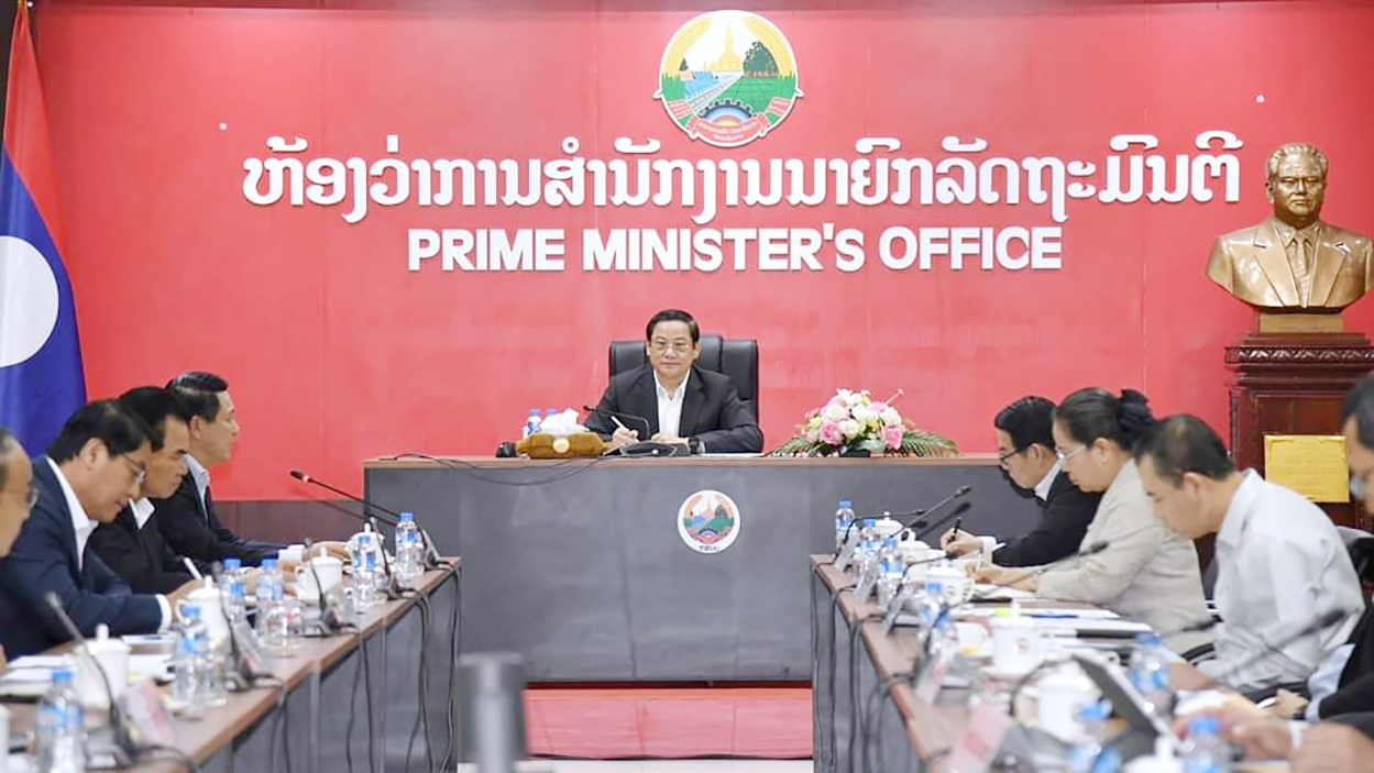 ໃນຕອນເຊົ້າຂອງວັນທີ 9 ສິງຫາ 2024 ທີ່ ຫ້ອງວ່າການສຳນັກງານນາຍົກລັດຖະມົນຕີ, ທ່ານ ສອນໄຊ ສີພັນດອນ,