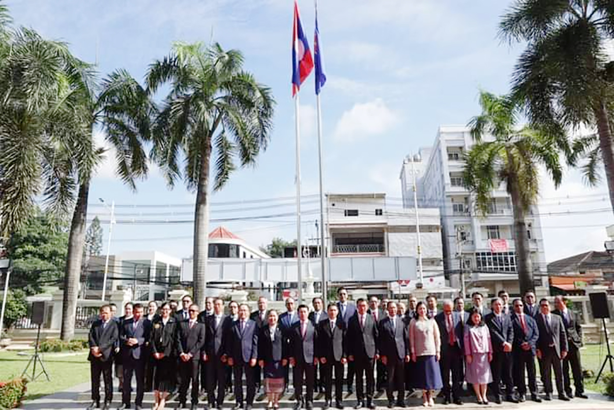 ກະຊວງການຕ່າງປະເທດ ຈັດພິທີເອົາທຸງຊາດ ແຫ່ງ ສປປ ລາວ ແລະ ທຸງອາຊຽນຂຶ້ນສູ່ຍອດເສົາ ເພື່ອສະເຫລີມສະຫລອງຄົບຮອບ 27 ປີ ທີ່ ສປປ ລາວ