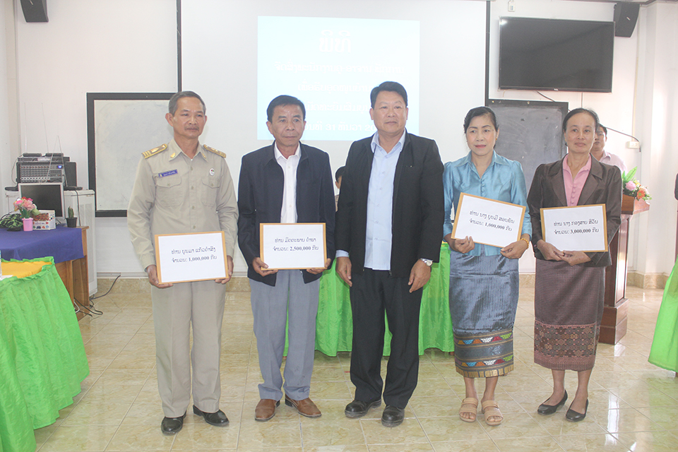 ວັນທີ 26 ທັນວາ ຜ່ານມາ ທີ່ຫ້ອງປະຊຸມຄະນະກຳມະການໂອແລມປິກແຫ່ງຊາດລາວ ໄດ້ມີພິທີມອບເງິນຊົມເຊີຍໃຫ້ນັກກີລາ ຄິກບ໋ອກຊິງທີມຊາດລາວ ທີ່ສ້າງຜົນງານໂດດເດັ່ນຄວ້າ 1 ຫຼຽນຄຳແລະ3 ຫຼຽນທອງ ໃນການແຂ່ງ ຂັນກີລາຊີເກມຄັ້ງທີ 30 ທີ່ຟີລິບປິນເປັນເຈົ້າພາບໃນພິທີເປັນກຽດ ເຂົ້າຮ່ວມໂດຍ