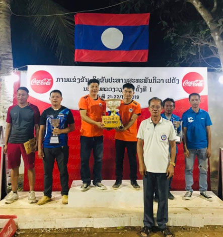 ທີມນັກກີລາເປຕັງຄູ່ຊາຍ ເຈົ້າຖິ່ນ ສະໂມສອນ ໂຕ້ ເປຕັງບ້ານດອນຝ້າຍ ທີມ 1 ປະກາດ ສັກດາຄອງແຊັມການແຂ່ງຂັນກີລາເປຕັງອ້ອມຂ້າງ 9 ຕົວເມືອງ ຊີງຂັນປະທານສະຫະພັນເປຕັງ ນະຄອນຫຼວງວຽງຈັນ (ນວ) ເມື່ອລະຫວ່າງວັນທີ 21-22 ທັນວານີ້ ເພື່ອເປັນຄັດເລືອກນັກກີລາເປຕັງຕາງໜ້າທັບ