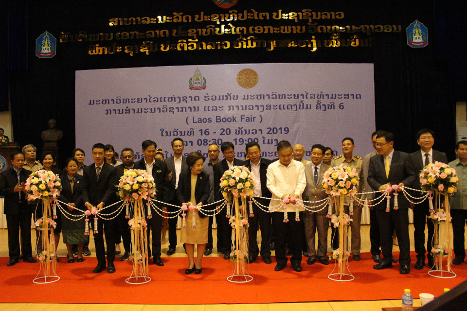 ໃນລະຫວ່າງວັນທີ 16- 20 ທັນວາ 2019 ມະຫາວິທະຍາໄລແຫ່ງຊາດລາວ (ມຊ) ຮ່ວມ ກັບສູນໜັງສືມະຫາວິທະຍາໄລ ທຳມະສາດປະເທດໄທ ໄດ້ຈັດພິທີ ສຳມະນາວິຊາການ ແລະວາງສະ ແດງປຶ້ມຄັ້ງທີ 6 ໂດຍການໃຫ້ກຽດ ເຂົ້າຮ່ວມຂອງທ່ານ ສົມສີ ຍໍພັນ ໄຊ ອະທິການບໍດີ ມຊ, ທ່ານ ນາງ ກາຊິນີ ວິທູດ
