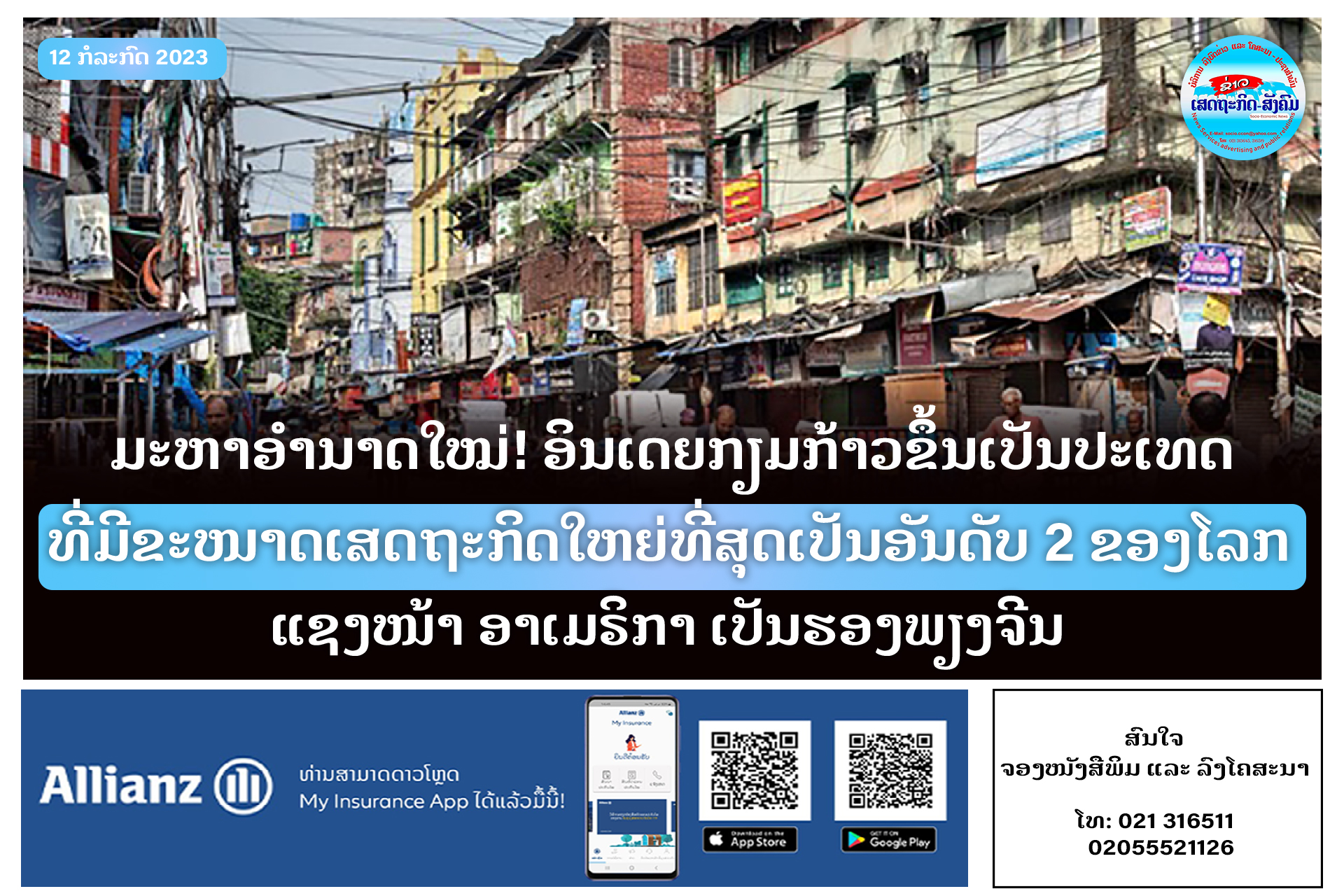 ຊຶ່ງລາຍງານສະບັບຫຼ້າສຸດຂອງ Goldman Sachs ທະນາຄານທຸລະກິດແຫ່ງການລົງທຶນລາຍໃຫຍ່ຂອງໂລກຈາກສະຫະລັດອາເມຣິກາ ເຜີຍໃຫ້ເຫັນວ່າ ອິນເດຍຈະກາຍເປັນປະເທດທີ່ມີເສດຖະກິດໃຫຍ່ເປັນອັນດັບ 2 ຂອງໂລກ ຮອງຈາກຈີນພາຍໃນປີ 2075, ແຊງໜ້າສະຫະລັດອາເມຣິກາ, ຍີ່ປຸ່ນ ແລະເຢຍລະມັນ.