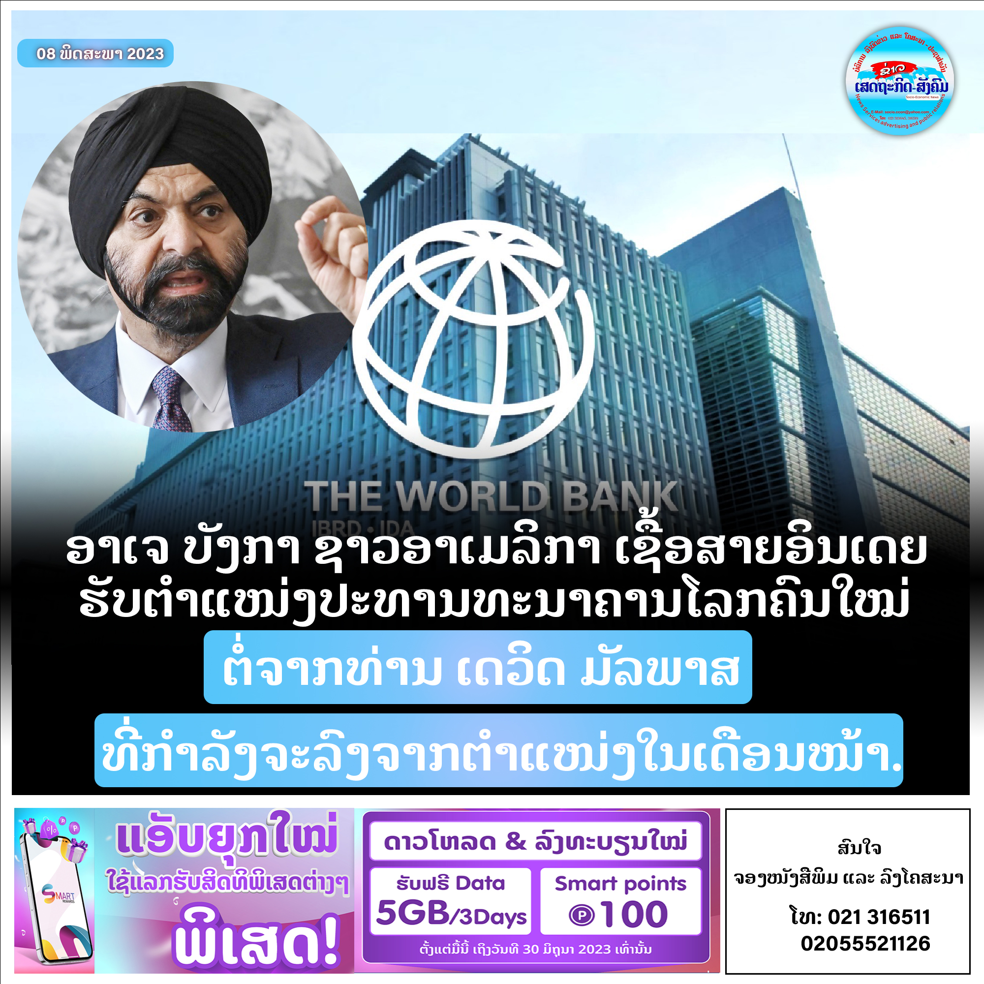 ຄະນະກຳມະການບໍລິຫານຂອງທະນາຄານໂລກໄດ້ລົງຄະແນນເລືອກທ່ານ ບັງກາ ເຊິ່ງເປັນຜູ້ທີ່ປະທານາທິບໍດີ ໂຈ ໄບເດັນ ຂອງອາເມລິກາເປັນຜູ້ຍືນສະເໜີຊື່ດ້ວຍຕົນເອງ ໃຫ້ເປັນປະທານທະນາຄານໂລກຄົນໃໝ່ ເຊິ່ງເຂົ້າຮັບຕຳແໜ່ງຕໍ່ຈາກທ່ານ ເດວິດ ມັລພາສ