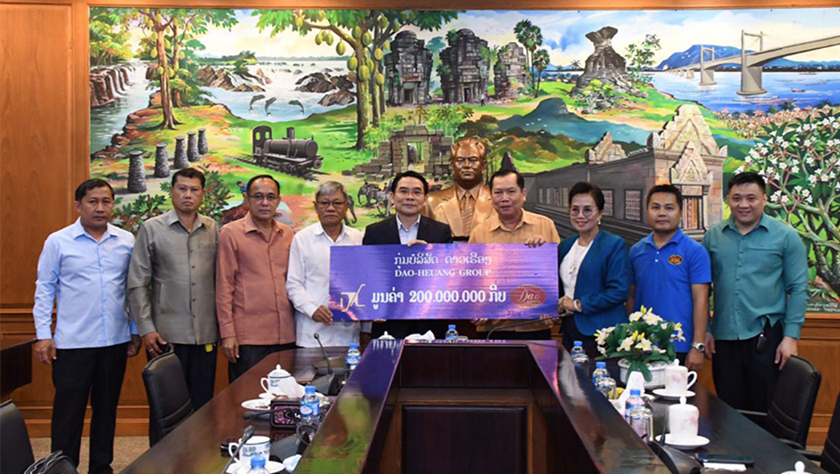 ກຸ່ມບໍລິສັດ ດາວເຮືອງ ມອບເງິນສົດ 200 ລ້ານກີບ ເພື່ອປະກອບສ່ວນສະໜັບສະໜູນ ແລະຊົມເຊີຍຕໍ່ຜົນສໍາເລັດອັນຈົບງາມຂອງກອງປະຊຸມໃຫຍ່ຄັ້ງທີ VIII ອົງ ຄະນະພັກແຂວງຈຳປາສັກ.