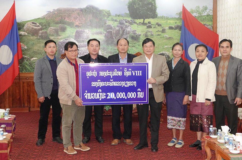 ຫຼາຍພາກສ່ວນໄດ້ປະກອບສ່ວນເງິນ ແລະນໍ້າດື່ມເພື່ອຮັບໃຊ້ກອງປະຊຸມໃຫຍ່ຄັ້ງທີ VIII ຂອງອົງຄະນະພັກແຂວງຊຽງຂວາງໃນລະຫ່ວາງວັນທີ 2-6 ພະຈິກ 2020 ຢູ່ທີ່ຫ້ອງວ່າການແຂວງຊຽງຂວາງໂດຍການກ່າວຮັບຂອງທ່ານ ບຸນຕົ້ນ ຈັນທະພອນ ອາດີດເຈົ້າແຂວງໆ