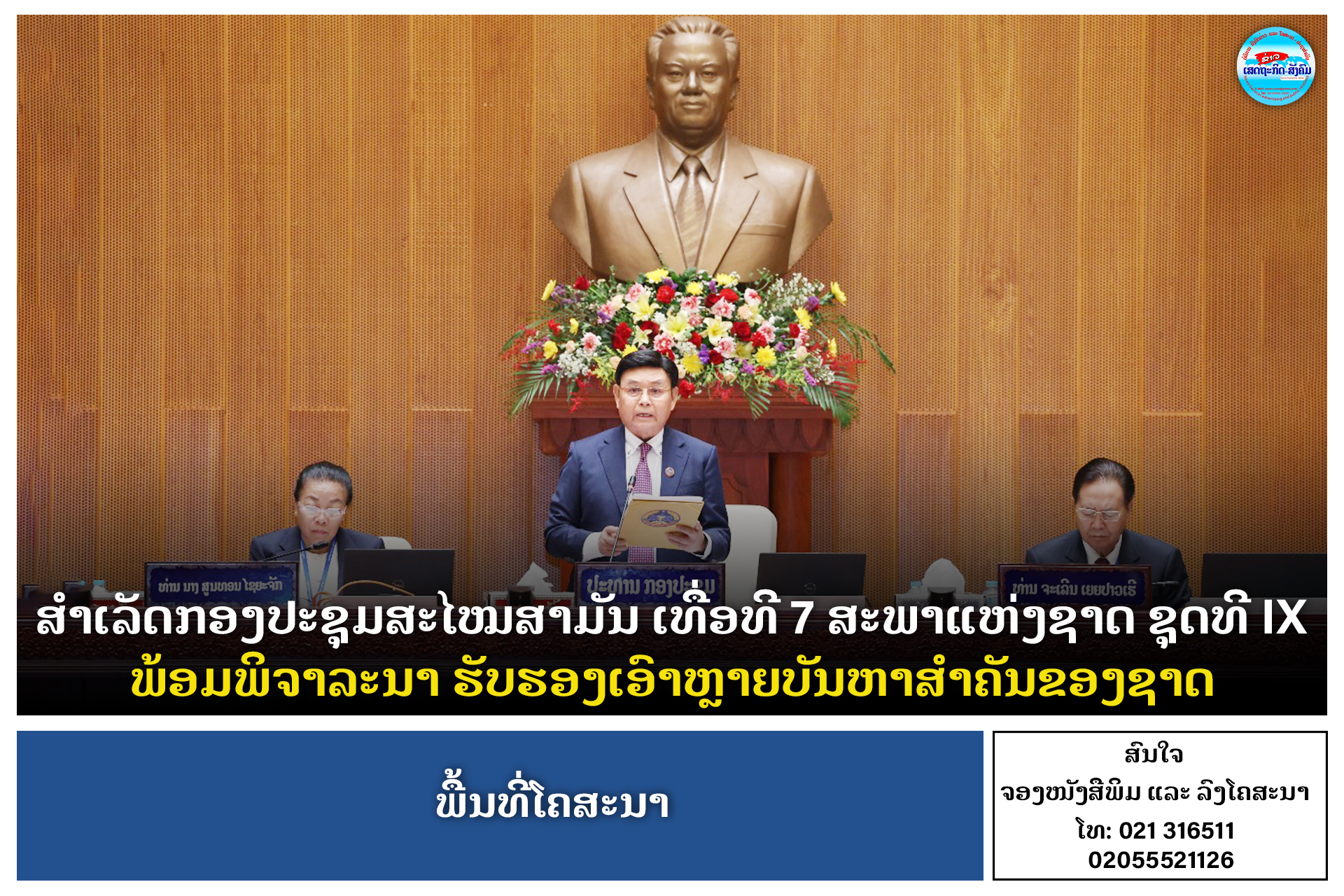 ກອງປະຊຸມສະໄໝສາມັນ ເທື່ອທີ 7 ຂອງສະພາແຫ່ງຊາດ ຊຸດທີ IX ໄດ້ອັດລົງດ້ວຍຜົນສຳເລັດຢ່າງຈົບງາມໃນຕອນເຊົ້າວັນທີ 2 ກໍລະກົດ