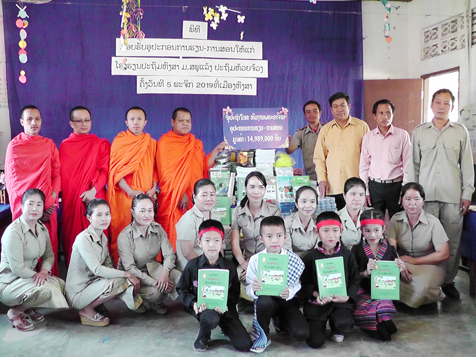 ພິທີມອບຮັບອຸປະກອນ ການຮຽນ-ການສອນ ແລະອຸປະກອນກີລາໃຫ້ແກ່ໂຮງຮຽນ 3 ແຫ່ງທົ່ວເມືອງຫົງສາ ໄດ້ຈັດຂຶ້ນໃນວັນ ທີ 5 ພະຈິກຜ່ານມາທີ່ໂຮງຮຽນປະຖົມສົມບູນ ບ້ານສີບຸນເຮືອງ ເມືອງຫົງສາ ໃຫ້ກຽດມອບໂດຍ ພະອາຈານ ສົມປະດິດ ພີມມະຈັນ ຕົວແທນຈາກຄະນະນະຄອນຫຼວງວຽງຈັນ