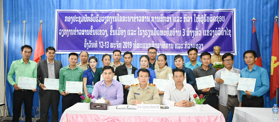 ພະແນກສຶກສາທິການ ແລະກີລາແຂວງບໍລິຄຳໄຊ ຫຼື ສກຂ ບໍລິຄຳໄຊສຳເລັດກອງປະຊຸມຝຶກອົບຮົມວຽກງານໂຄສະນາຂ່າວສານການສຶກສາ ແລະກີລາໃຫ້ຜູ້ ຮັບຜິດຊອບວຽກງານໂຄສະນາຂ່າວສານຂັ້ນແຂວງ,ຂັ້ນເມືອງ ແລະໂຮງຮຽນມັດທະຍົມສຶກສາບ້ານ 3 ສ້າງທົ່ວແຂວງຄັ້ງທີ I ປະຈຳປີ 2019 ເພື່ອສ້າງ